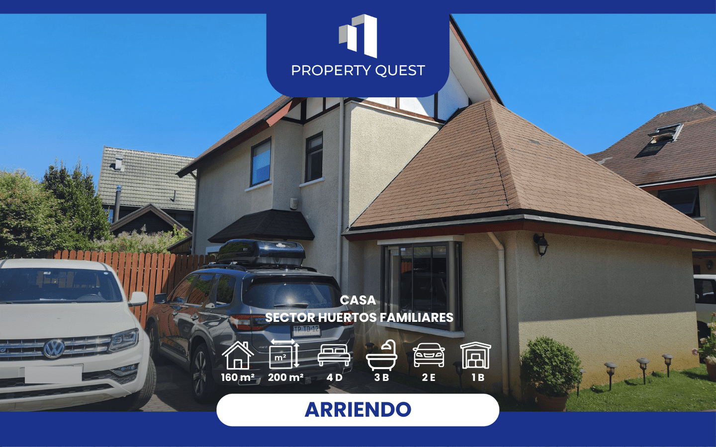 Arriendo Amplia Casa 4D+3B Condominio Huertos Familiares